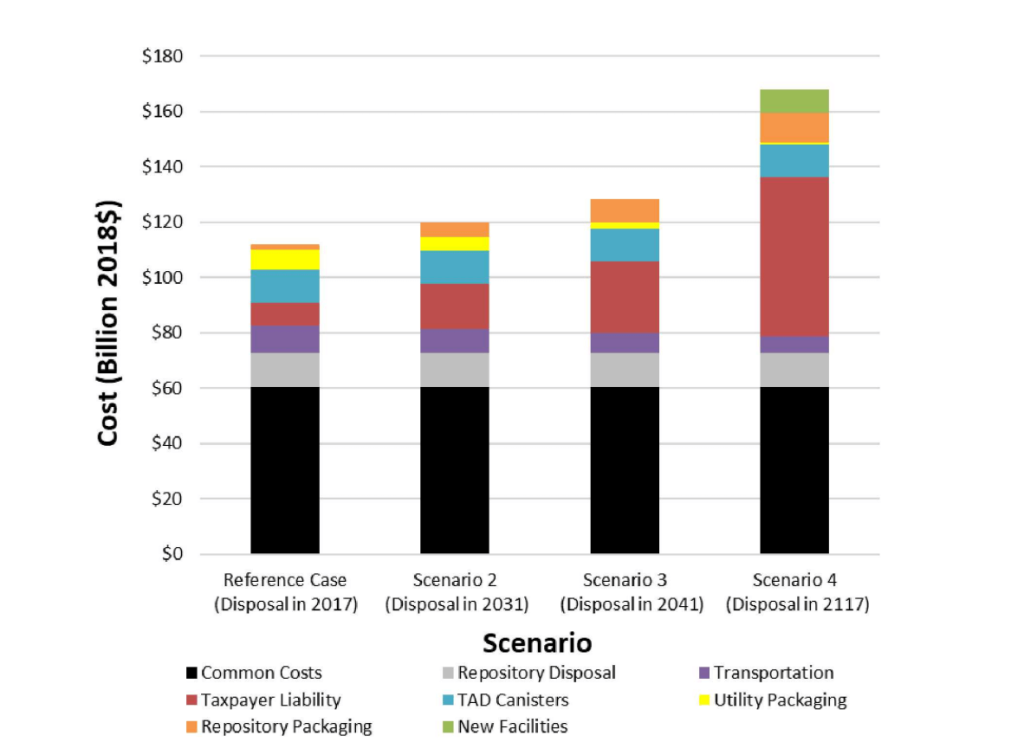 Sandia’s findings were unequivocal: delaying repository construction by 100 years is the most expensive path, costing taxpayers over $55 billion more than if disposal had begun in 2017.